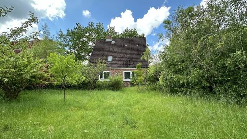 Das Grundstück umfasst eine Gesamtfläche von 770 Quadtratmetern und beeindruckt durch seinen gut geschnittenen, großen und sonnigen Garten. Es befindet sich im alten Teil von Mönkeberg in ruhiger Wohnlage, fußläufig entfernt vom Fähranleger, Strand und dem Yachthafen. Es handelt sich um ein Eckgrundstück angrenzend an eine Sackgasse, daher gibt es nur einen unmittelbaren Nachbarn. Der Altbestand des Grundstücks besteht aus einem stark sanierungsbedürftigem Einfamilienhaus. Dieses Einfamilienhaus wurde im Jahr 1938 erbaut und verfügt über eine Wohnfläche von 101 m². Es ist vollunterkellert. Das Haus ist seit einiger Zeit unbewohnt, das Grundstück ist entsprechend zugewachsen. Die Wohnfläche verteilt sich im Haus über zwei Etagen auf sechs Zimmer, ein Gäste WC, Küche, Bad und die Flure mit Treppenhaus. Es wird mit einer Ölheizung beheizt, diese ist von 1977.