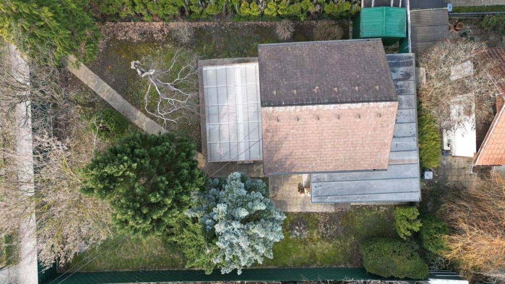 Die Flächenwidmung für das Grundstück ist Grünland - Erholungsgebiet - Kleingartengebiet für ganzjähriges Wohnen (Eklw). Die Bebauung erlaubt eine bebaute Fläche von maximal 50 m² sowie eine maximale Höhe von 5,5 m. Die Terrasse darf maximal 2/3 der bebauten Fläche des Kleingartenwohnhauses betragen, z. B.: 33,33 m² bei einem 50 m² Kleingartenwohnhaus. Der Keller muss sich unter dem Kleingartenwohnhaus und unter der Terrasse befinden, z. B.: 83,33 m² bei einem 50 m² Kleingartenwohnhaus. Siehe Merkblatt der Stadt Wien. Dank der breiten Straße neben dem Haus ist der Abriss des alten Hauses und die Errichtung eines neuen, ganzjährig bewohnbaren Hauses unkompliziert. Die alten Bäume, die am Weg stehen, können problemlos entfernt werden, da sie vom Wiener Baumschutzgesetz nicht betroffen sind.