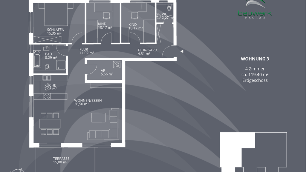 4 Zimmer  •  119,4 m²  •  1. Geschoss
