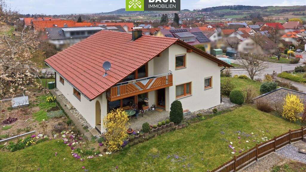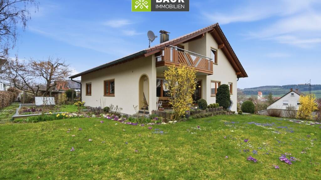 In herrlicher Höhenlage mit traumhaftem Blick über das Dorf und die umliegende Natur befindet sich dieses äußerst gepflegte Einfamilienhaus in einer ruhigen Anliegerstraße von Zußdorf. Das im Jahr 1988 in leichter Hanglage errichtete Haus steht auf einem großzügigen Grundstück mit 884 m² und überzeugt durch seine durchdachte Raumaufteilung, sowie seine helle und freundliche Atmosphäre. Insgesamt stehen Ihnen fünf Zimmer, ein Tageslichtbad mit Dusche und Badewanne sowie ein separates Gäste-WC zur Verfügung.