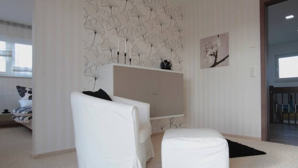 Im Inneren überzeugt das Haus durch seine praktische und familienfreundliche Raumaufteilung. Besonders komfortabel ist das Obergeschoss, das sich in zwei Bereiche aufteilt. Zum einen den Bereich der Kinder und zum anderen den der Eltern, der über eine Ankleide mit Zugang zum Balkon verfügt. Vom Schlafzimmer aus ist auch der direkte Zugang zum modernen Familienbad vorgesehen. Die Architektur dieser modernen Stadtvilla ist konsequent geradlinig und puristisch elegant. Liegende Fensterformate in Kombination mit der parallel dazu verlaufenden Putzstreifenfassade verleihen diesem Haus eine unverwechselbar frische Ausstrahlung.