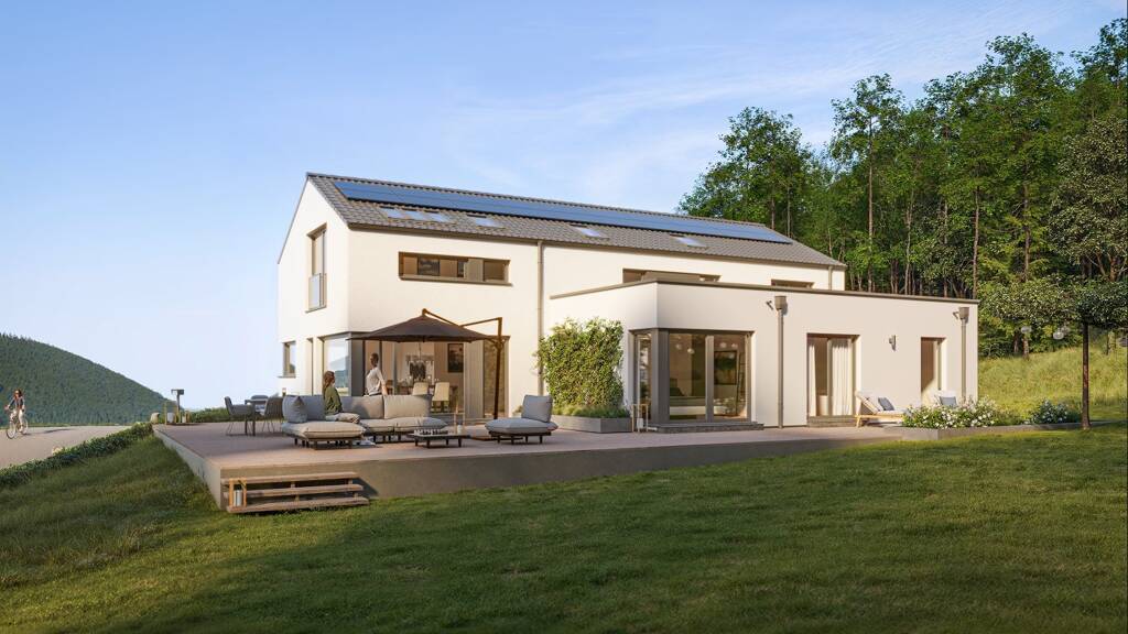 Ihr Traumhaus wartet - das CELEBRATION 274 von Bien-Zenker. Modernes Design trifft auf durchdachte Raumaufteilung. Mit 10 Zimmern und 295 m² Wohnfläche auf 1800 m² Grundstück erleben Sie Flexibilität und Komfort. Das L-förmige Erdgeschoss bietet einen geschützten Sitzplatz - perfekt für entspannte Stunden. Ideal für Mehrgenerationenwohnen mit Privatsphäre und Gemeinschaft.