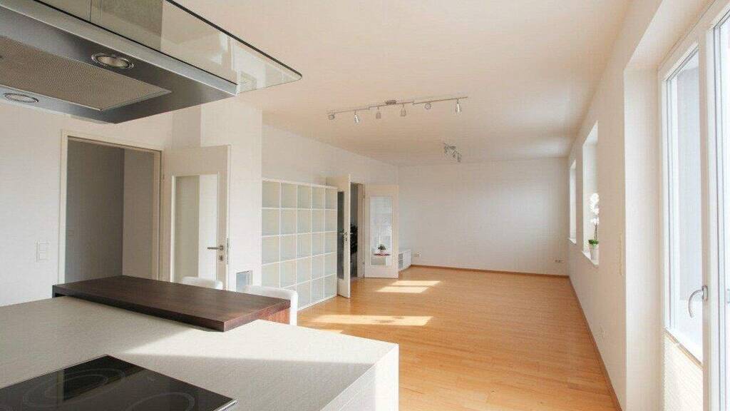 Die Wohnung verfügt über 3 getrennt begehbare Schlafzimmer, eines davon mit Garderobe. Vom Wohnzimmer mit offener DAN-Küche und Kochinsel hat man Ausgang auf die ca. 8 m² Terrasse, süd-westseitig.