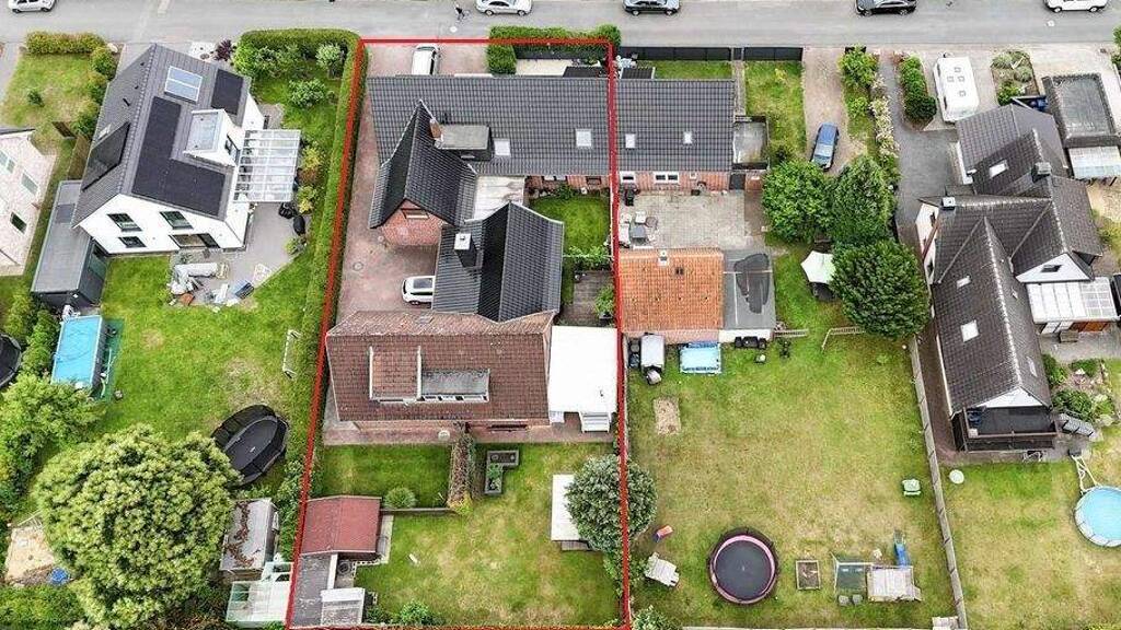 Das knapp 1.000 m² große Eigenlandgrundstück ist durchdacht aufgeteilt und bietet jeder Einheit einen dazugehörigen Gartenteil. Weiter befinden sich 3 PKW-Stellplätze auf dem Gelände.