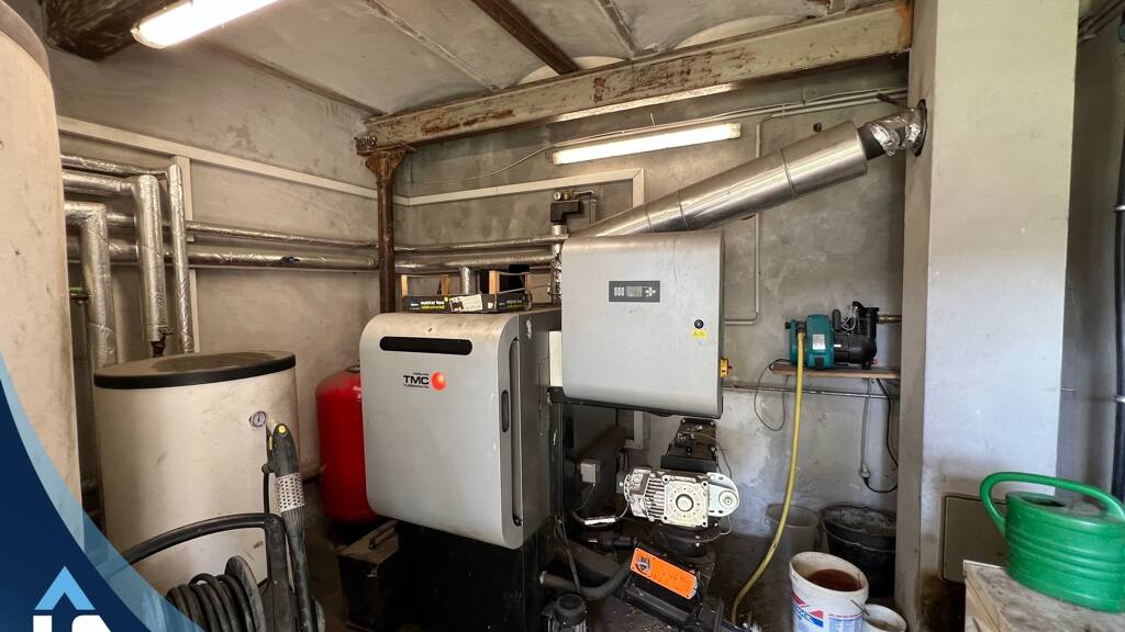 Zu dieser Immobilie gehört eine riesige Scheune, die bereits teilweise ausgebaut und vorbereitet wurde. Hier finden Sie bereits eingezogene Trennwände und optimale Voraussetzungen für individuelle Renovierungs- und Ausbauprojekte. Ein Teil der Scheune beherbergt bereits die Hackschnitzelheizanlage, was Ihnen eine effiziente und nachhaltige Energieversorgung bietet.