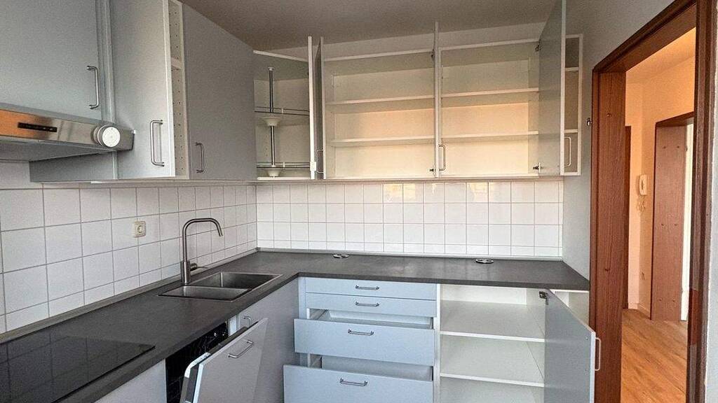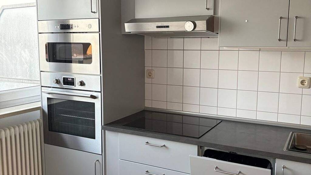 Diese gut geschnittene 2-Zimmer-Wohnung befindet sich im 6. Obergeschoss eines gepflegten Mehrfamilienhauses und besticht durch ihre großzügige Terrasse mit Blick nach Osten – ideal für sonnige Morgenstunden. Die Terrasse verläuft entlang der ganzen Wohnung und ist sowohl vom Wohn- als auch vom Schlafzimmer zu betreten. Die moderne Einbauküche ist mit Herd, Ofen, Kühl-/Gefrierkombination, Spülmaschine und Mikrowelle voll ausgestattet. Zudem bietet die Wohnung eine praktische Abstellkammer neben der Küche und einen zusätzlichen Kellerraum für weiteren Stauraum. Hier genießen Sie nicht nur eine tolle Aussicht, sondern auch viel Komfort und Platz.