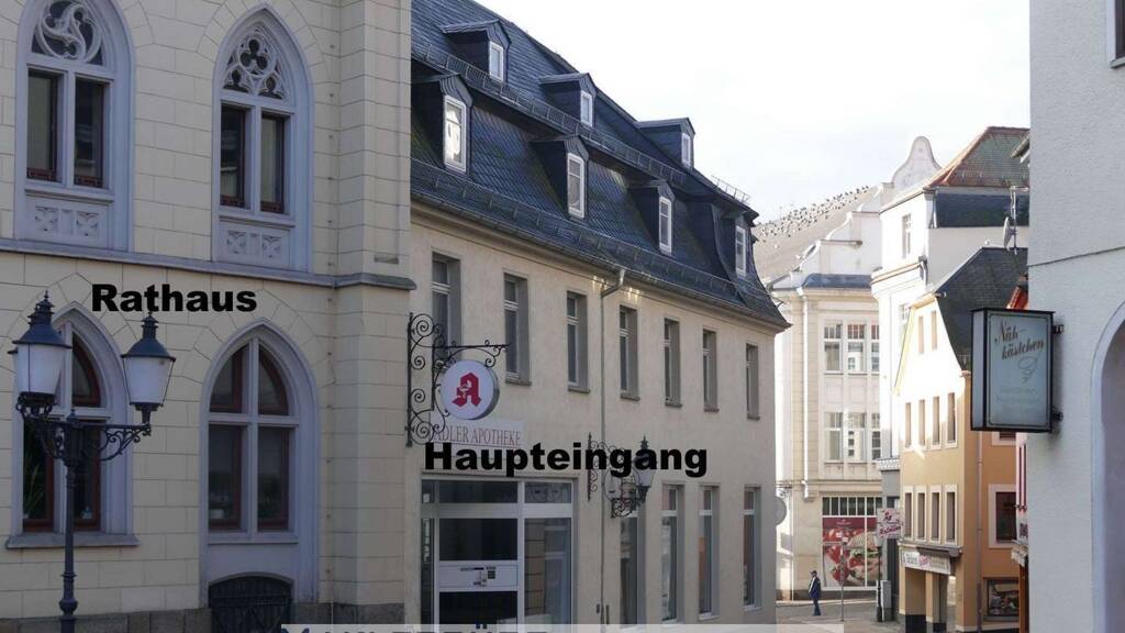 Der Laden befindet sich Im Stadtzentrum von Greiz, direkt neben dem Rathaus.
