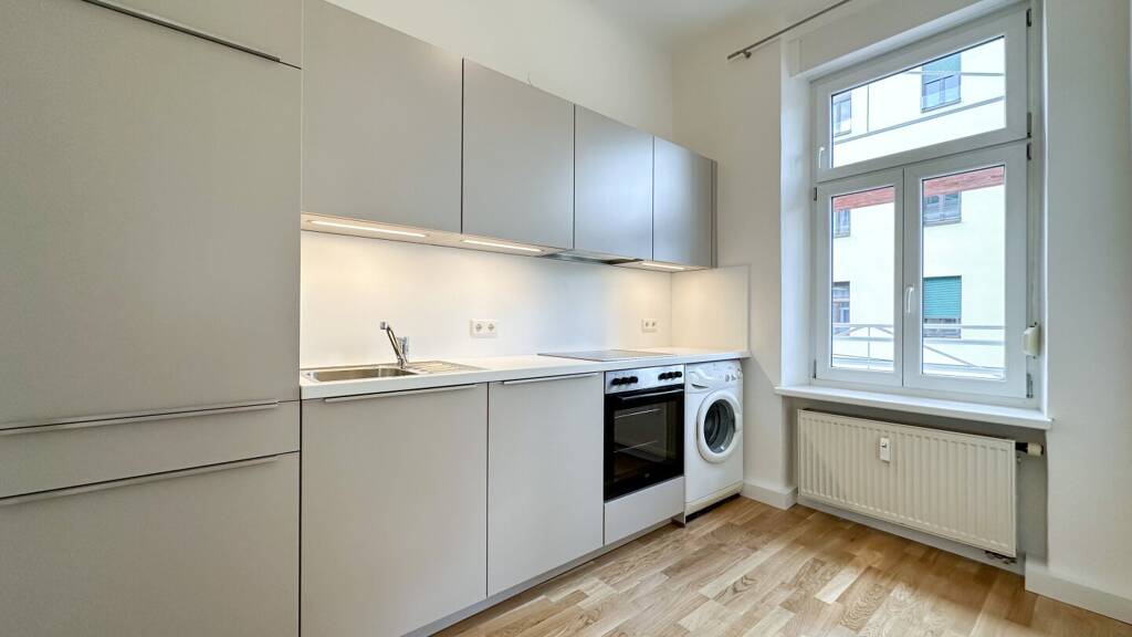 Ihr neues Zuhause weist eine Wohnfläche von rd. 35,67m² auf und verfügt über eine praktische Raumaufteilung. Über den Vorraum, gelangt man in das Badezimmer inkl. WC und neuwertigem Spiegelschrank. Weiter geht es in den Küchen- und Essbereich. Die neuwertige Küche inkl. Geschirrspüler und Waschmaschine, große Fenster mit außenliegendem Sonnenschutz sowie die altbautypische Raumhöhe wissen sofort zu begeistern! Gerade die Extraküche, welche vom Wohn- und Schlafraum abgetrennt ist und über ein Fenster zum Lüften verfügt, erweist sich als großer Vorteil beim Kochen. Der großzügige Wohn- und Schlafraum lässt Ihnen bei der Einrichtung und Gestaltung Ihrer neuen Wohlfühloase viel Spielraum. Klassischer Fischgrätparkett verleiht Ihrem neuen Eigenheim ein gehobenes Wohngefühl.