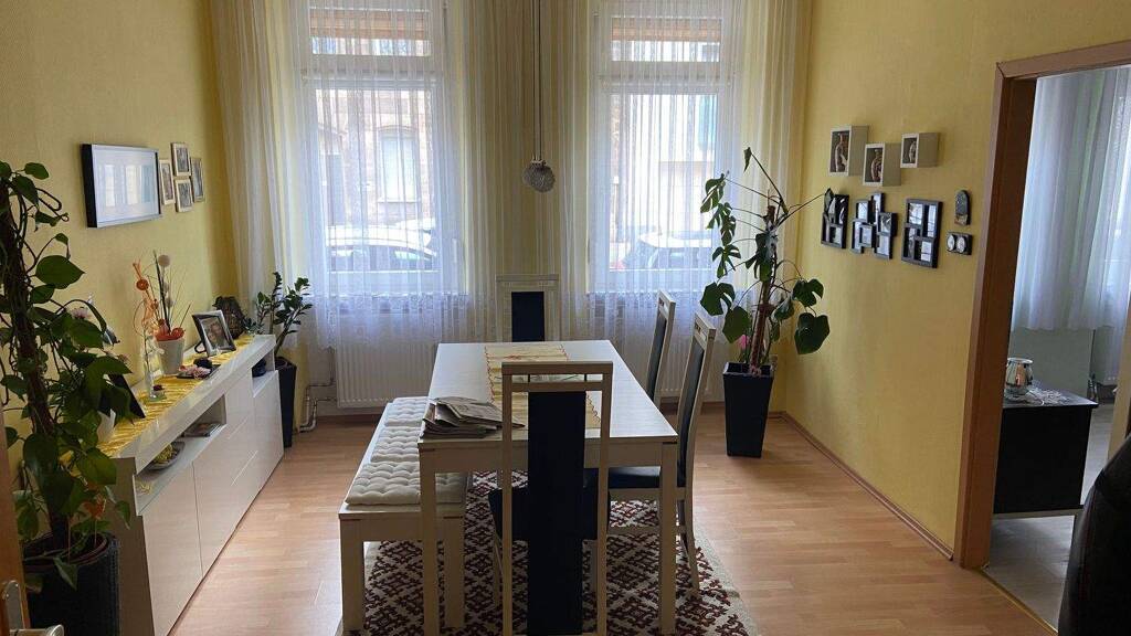 Die Raumaufteilung umfasst ein Wohnzimmer, ein Schlafzimmer, ein weiteres Zimmer, eine Küche, ein Badezimmer sowie einen praktischen Flur und ein Lagerraum. Zur Wohnung gehört außerdem ein separates Kellerabteil, welches weiteren Stauraum zur Verfügung stellt. Die Gasetagenheizung ermöglicht eine verbrauchsabhängige und individuelle Heizkostensteuerung in der Wohnung. Das Gebäude besticht durch seinen klassischen Altbaucharme. Über die Durchfahrt zum Innenhof gelangt man in das Treppenhaus. Die Allgemeinflächen sind im ursprünglichen Stil erhalten und vermitteln ein ansprechendes Wohngefühl. Eine ideale Kapitalanlage für Investoren mit Fokus auf Denkmalschutz-Immobilien.
