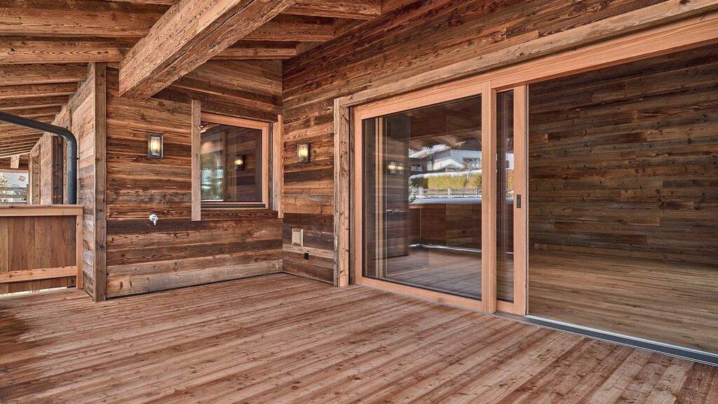 Altholz, Naturstein und viel Glas dominieren die attraktive Fassade und spiegeln den modernen Kitzbüheler Architekturstil perfekt wider.