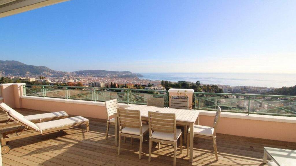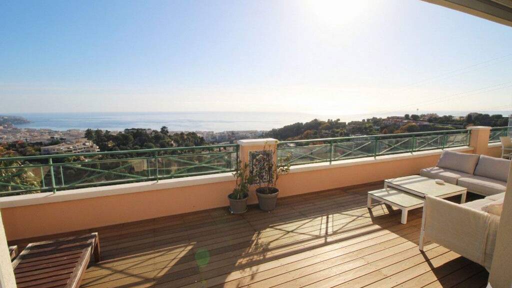 Penthouse - Rooftop Villa: Perched on the heights of Parc Imperial, along the "Bellevue" corniche, this exceptional top-floor 3 bedroom apartment offers panoramic sea views and comes with a cellar and two underground parking spaces.