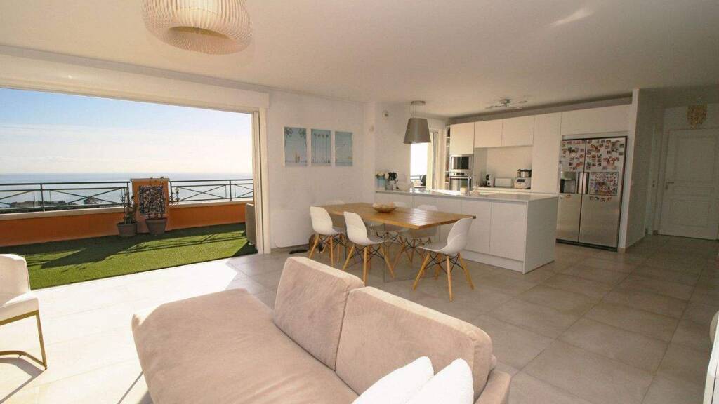 Key Features: Quiet and private location Rare living space of 122.24 m2 South and east-facing exposure 78 m2 corner terrace overlooking the sea and surrounding hills Open-plan kitchen leading to a living area of over 50 m2