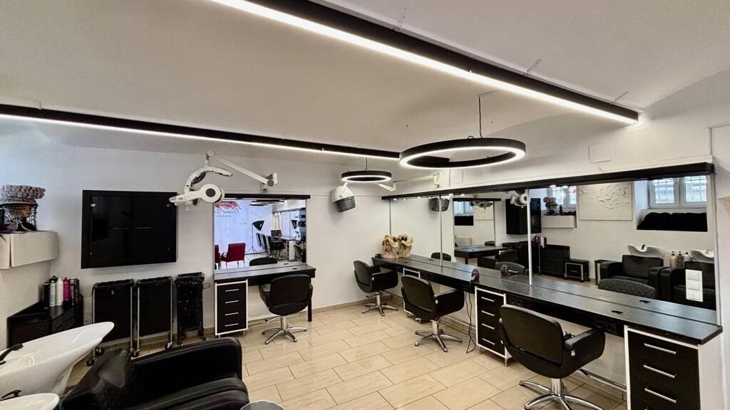 Der Salon bietet Platz für 7 Frisierstühle sowie 2 Rückwärtswaschanlagen mit Stuhl, zudem sind 8 Warteplätze vorhanden - perfekt für einen reibungslosen Kundenverkehr. Für ein angenehmes Ambiente sorgen ein hochwertiger Granitboden sowie eine moderne Beleuchtung, die im Jahr 2024 auf energieeffiziente LED-Leuchten umgestellt wurde. Das gesamte Mobiliar wurde im Jahr 2019 erneuert und befindet sich in ausgezeichnetem Zustand.