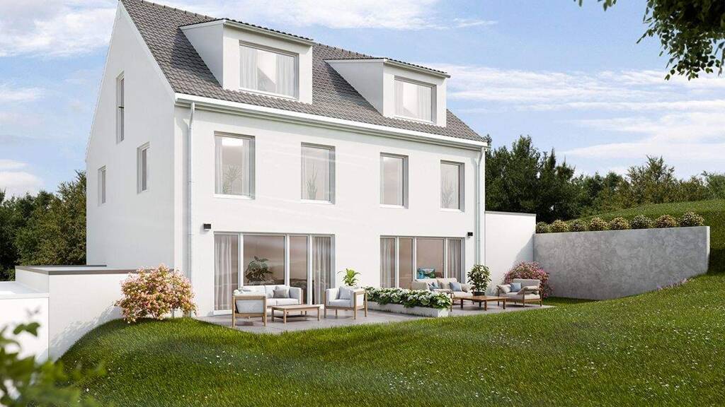 Haus 4: Bereits beim Betreten empfängt Sie ein heller Eingangsbereich mit einem praktischen Gäste-WC. Der großzügige Wohn- und Essbereich ist offen gestaltet und bildet den Mittelpunkt des Familienlebens. Große Fensterflächen sorgen für ein freundliches, lichtdurchflutetes Ambiente und einen freien Blick in Ihren eigenen Garten. Die offene Küche fügt sich harmonisch in den Wohnbereich ein - ideal für alle, die Kochen, Genießen und Geselligkeit verbinden möchten. Auf der Terrasse können Sie sonnige Stunden und entspannte Sommerabende genießen.
