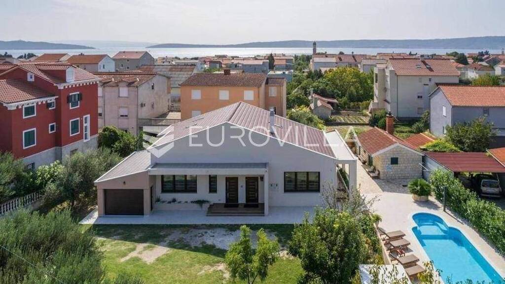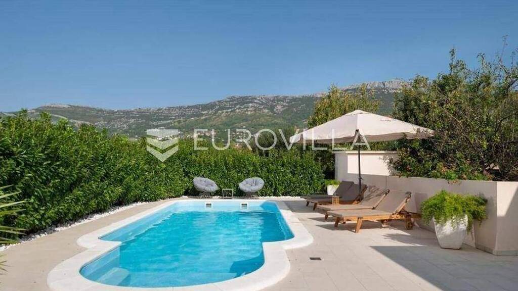 Kastel Stari, luksuzna vila s 2 stambene jedinice, garazom, bazenom i dimnom kuhinjom ukupne povrsine 350m2, izgradena na zemljistu povrsine 1216 m2.Kuca je visine prizemlja i visokog potkrovlja, s posebnim ulazima i odvojenim stubistem.U prizemlju se nalazi ulazni hodnik, kuhinja, blagovaonica, dnevni boravak, ostava, master soba s kupaonicom i walk in ormarom, dvije spavace sobe, kupaonica te vanjska natkrivena terasa. Iz terase u prizemlju se pristupa dimnoj kuhinji te bazenu.Kuca je dostupna od 01.10.2025 godine.Jako kvalitetna gradnja i uredenje, mirna lokacija svega 700 m od rive i mora cine ovu kucu idealnom opcijom za ugodan obiteljski zivot izvan grada i guzvi.Centar Splita 17 km.Aerodrom 4 km.Vise informacija na upit.... Vise na eurovilla.hr, ID: 466473
