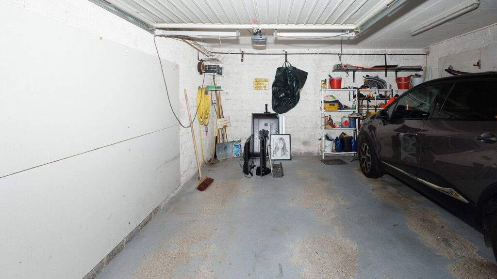 Ausgestattet mit neuer Elektrik, modernen Fußböden und Anstrichen wirkt die Ebene hell und freundlich. Über einen kleinen Flur mit Abstellnische erreicht man die beiden gegenüber-liegenden Zimmer. Der Raum zur Straße hin bietet eine phänomenale Aussicht und ist mit verschiedenen Regaleinbauten optimal auf eine Nutzung als Homeoffice oder Hobbyraum ausgerichtet. Das zweite Zimmer liegt zum Garten heraus. Highlight ist hier in jedem Fall die Loggia mit Blick ins Grüne und die große Fensterfront. Abgerundet wird das Immobilienangebot durch einen ca. 12 m2 großen Kellerraum und eine Einzelgarage mit elektrischem Schwenktor. Auf der Stellfläche vor der Garage kann bequem ein zweites Fahrzeug geparkt werden. Als Addon gehört der seitliche Bereich neben dem Hauseingang zur Wohnung. Dort befindet sich ein praktischer Unterstand zur Holzlagerung. Leider verfügt das Haus nicht über einen Aufzug.