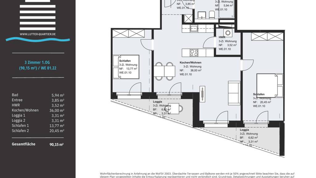 3 Zimmer  •  90,2 m²  •  1. Geschoss