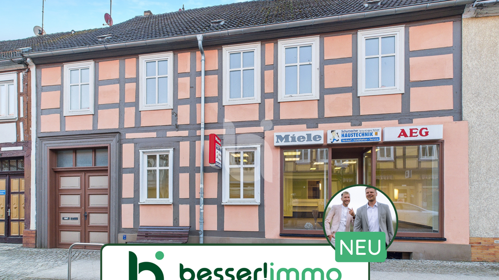 Mitten in der Innenstadt von Kyritz wartet ein Wohn- und Geschäftshaus in Fachwerkbauweise aus ca. 1900 - eine Lage, die Frequenz schafft, und ein Bestand, der Gestaltungsspielraum lässt.