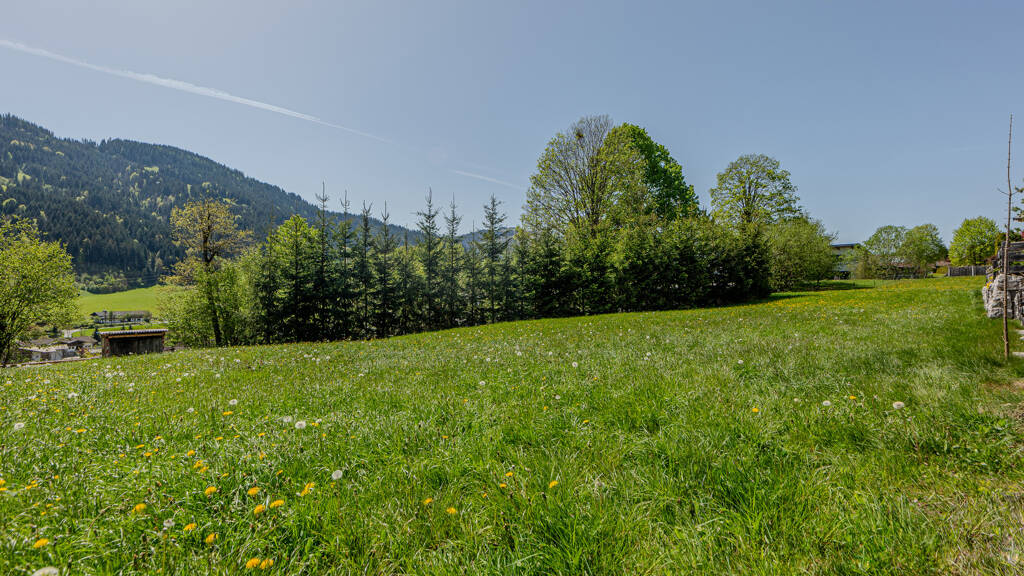 Dieses gut geschnittene, großzügige, voll erschlossene Baugrundstück liegt auf einem traumhaften Sonnenplateau direkt am Fuße des Gebirgsmassivs des hoheitsvollen Wilden Kaisers im sehr begehrten Ortsteil Schwendt und verfügt bereits über die Widmung: Bauland.