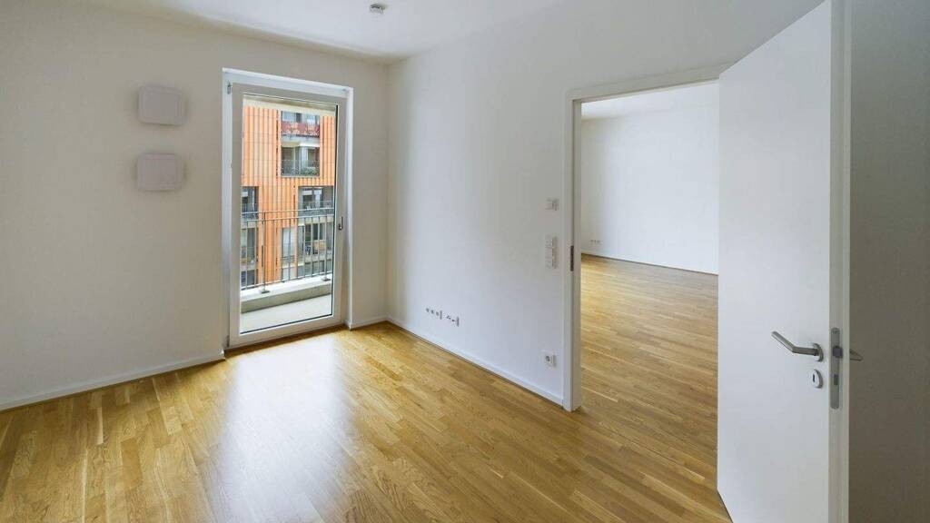 Bodentiefe Fenster durchfluten den Raum mit Tageslicht und schaffen eine Atmosphäre, die zum Verweilen einlädt. Die moderne und offene Einbauküche fügt sich nahtlos in das Wohnzimmer ein und verleiht der Wohnung einen gemütlichen und eleganten Touch. Der zum Innenhof ausgerichtete Südbalkon eignet sich perfekt, um die Sonnenstrahlen oder die frische Luft zu genießen.