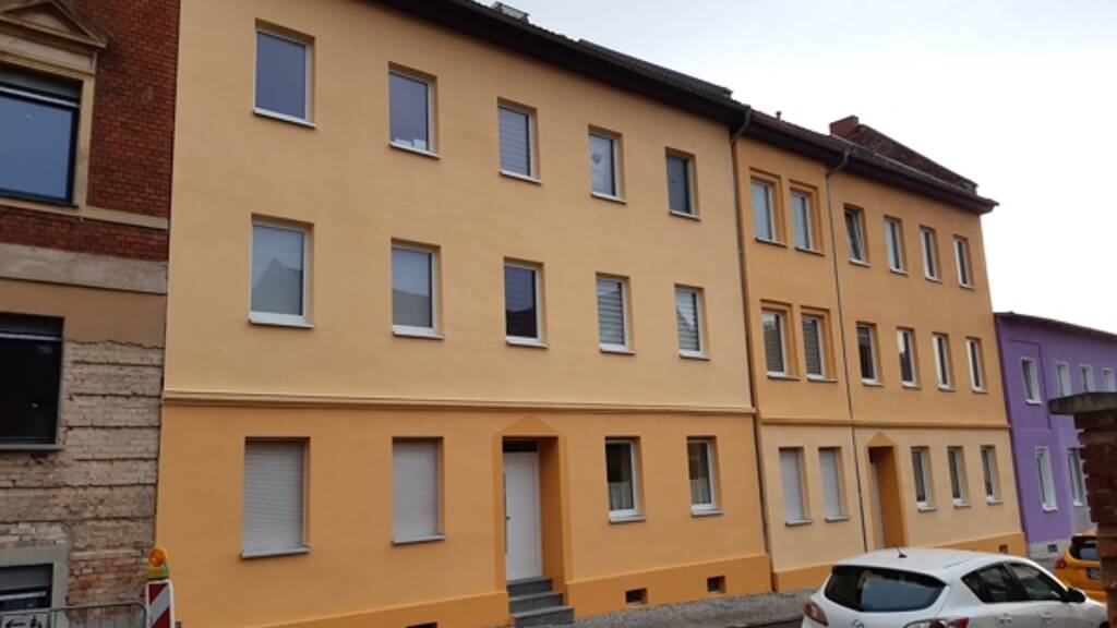 Mehrfamilienhaus in ruhiger Seitenstraße von Aschersleben, aber nur ca. 900 m bis zum Rathaus. Gepflegte helle und ruhige Dachgeschosswohnung. Bad mit Wanne, geräumiges Wohnzimmer, zwei Schlafzimmer und Küche. Fahrradschuppen im Hof.