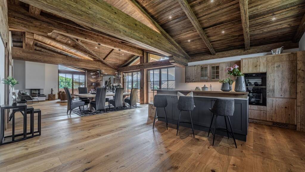 Dieses exklusive, komplett möblierte Neubau Chalet verfügt über ca. 315 m² Wohn-Nutzfläche. Dieses Alpenchalet vereint hochwertigen Wohnkomfort mit absoluter Ruhelage in Kössen. Umgeben von schönster Bergkulisse und teilweise unberührte Natur. Der Wilde Kaiser zeigt den Kohlbachweg Bewohnern im Abendrot auch seine zahme Seite. Lebensgefühl pur inmitten von Tirols ursprünglicher Natur, auf höchstem Wohnkomfort. Das Chalet wurde vom Bauherren mit viel Herzblut und Liebe zum Detail extrem hochwertig ausgestattet.