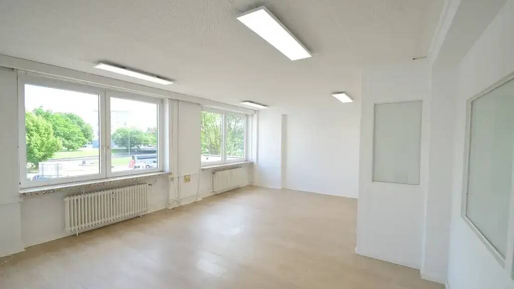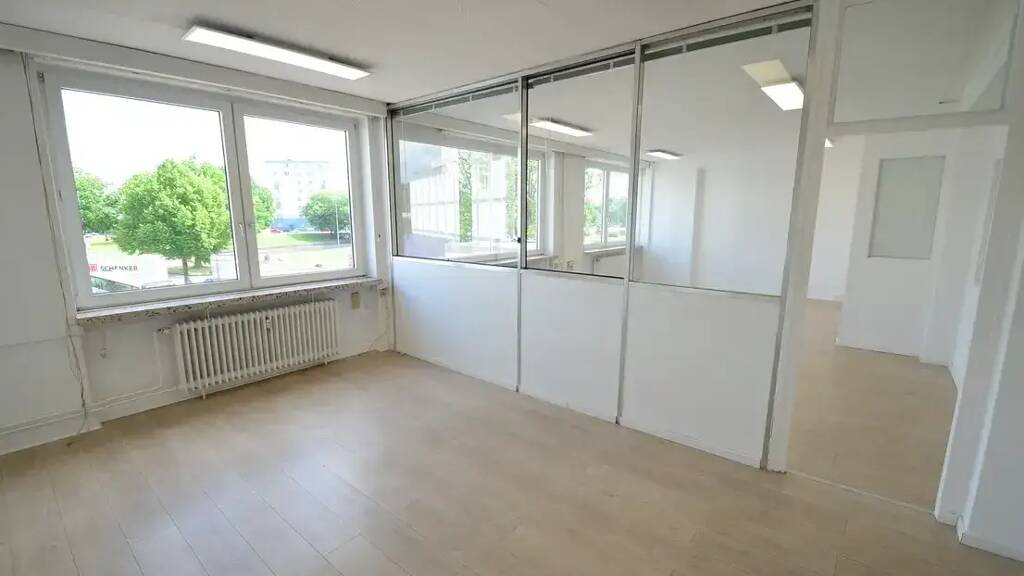 - Modernes Büro - Neue LED-Deckenbeleuchtung in sämtlichen Räumen (Fotos sind von vor der Renovierung) - Moderne Damen- und Herren-WCs - Exklusiver Laminatboden in der Farbe Eiche - Großzügige Gemeinschaftsteeküche - Langfristige Erweiterungsmöglichkeit durch weitere Büros auf der Büroetage - im 1. OG ohne Aufzug