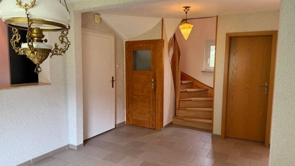 Willkommen in der "Blumensiedlung", eine Wohnlage, die eine gute Infrastruktur und angenehmes Wohnen vereint. Diese charmante Doppelhaushälfte, ursprünglich um 1938 in massiver Bauweise errichtet und 1995 durch einen praktischen Anbau erweitert, bietet Ihnen ein wunderbares gemütliches Zuhause. Beim Betreten des Hauses gelangen Sie durch den großzügigen Windfang in einen offen gestalteten Flur, der das Herzstück des Erdgeschosses bildet. Hier gehen Wohnkomfort und Funktionalität Hand in Hand: Das Esszimmer und die angrenzende offen gehaltene Küche mit Einbauküche fügen sich zu einem einladenden Bereich zusammen - ideal für gemütliche Kochabende und gesellige Stunden. Das helle Wohnzimmer mit Zugang zur Terrasse eröffnet den Blick in den liebevoll angelegten Garten und schafft einen angenehmen Übergang zwischen Innen- und Außenbereich. Über eine gepflegte Holztreppe erreichen Sie das Obergeschoss. Ein lichtdurchfluteter Flur mit Platz für einen kleinen Arbeitsbereich führt Sie zu einem großzügigen Schlafzimmer, einem Kinderzimmer sowie zu einem Tageslichtbad mit Badewanne und Dusche. Ein zusätzlicher kleiner Abstellraum sorgt für wertvollen Stauraum. Der vielseitig nutzbare Keller überzeugt mit einem Waschraum mit einem weiteren WC, einer Dusche, sowie einem Hobbykeller - perfekt für individuelle Freizeitprojekte. Ein besonderes Highlight ist die integrierte Sauna, die Ihrem Zuhause einen Hauch von Wellness verleiht. Ein separater Ausgang führt direkt in den ruhigen Garten mit kleinem Teich, der zum Entspannen einlädt. Die Immobilie bietet Ihnen die Möglichkeit, die anstehenden Renovierungen nach Ihren eigenen Vorstellungen zu gestalten. Die hierfür kalkulierten Kosten sind bereits im Kaufpreis berücksichtigt - gestalten Sie Ihren persönlichen Wohntraum ganz nach Ihren Wünschen. Ein sonniger Garten und eine Garage, die sowohl Ihrem PKW als auch Fahrrädern zuverlässigen Schutz bietet, runden das Angebot ab. Die Zufahrt zum Grundstück führt über einen z. T. öffentlichen und privaten Weg, wobei eine schriftliche Vereinbarung zum privaten Teil des Weges die Zufahrt sichert. Sie haben Interesse, Ihr neues Zuhause kennenzulernen? Dann nutzen Sie bitte das Kontaktformular auf dieser Seite oder besuchen Sie uns in unserem Büro.