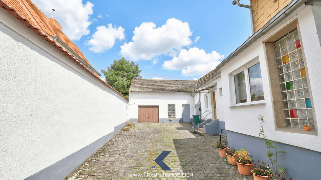 Der Innenhof ist durch eine Toreinfahrt abgetrennt und bietet ein geschütztes, privates Umfeld - ideal zum Entspannen, Arbeiten oder für Kinder zum Spielen. Im hinteren Bereich befinden sich eine praktische Werkstatt sowie eine angrenzende Scheune, durch die Sie direkt in den Garten gelangen. Auch der Heizungsraum ist bequem über den Hof oder die zweite Küche zugänglich.