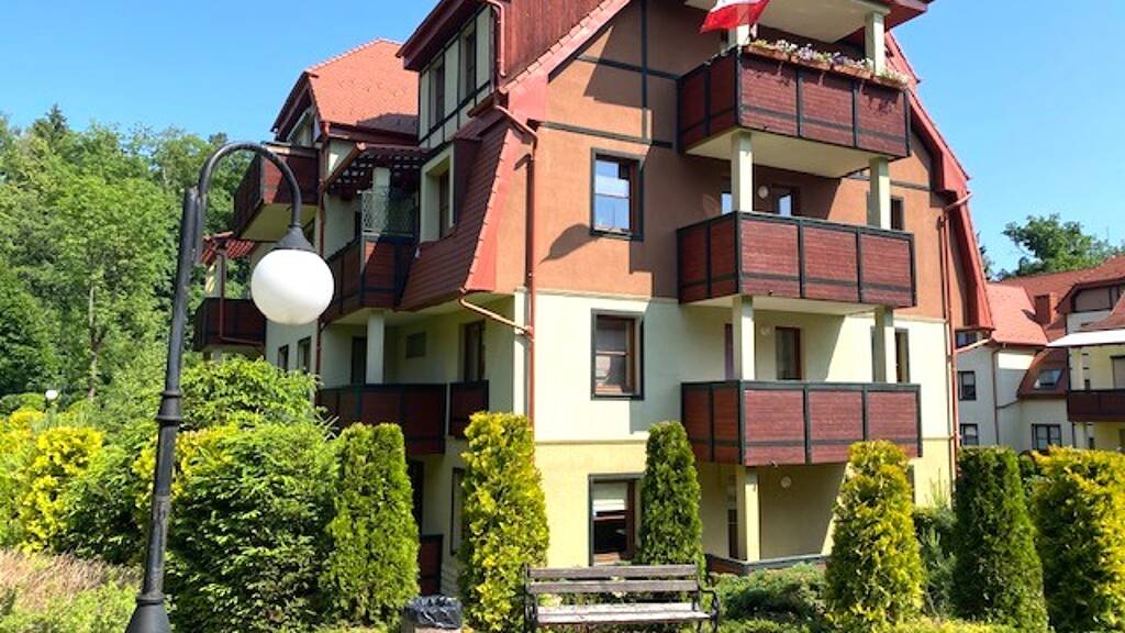 Lage: Das komfortable, vollausgestattete 3 Zim.-Apartment befindet sich in einer exzellenten Lage im Villenvierten in unmittelbarer Nähe vom Park in Polanica Zrdoj / Bad Altheide! Zahlreiche Versorgungseinrichtungen des täglichen Bedarfs u.a. Restaurant, Cafés, Banken, Supermarkt, Ärzte, Apotheken stehen vor Ort zur Verfügung. Die besonders gute Anbindung zum Verkehrsnetz Kudowa Zdroj - Grenze (ca. 26 km), Wroclaw Flughafen (ca. 101 km), Zieleniec Skigebiet (ca. 23 km) und Prag (ca. 185 km) zeichnen diese Mietwohnung aus!