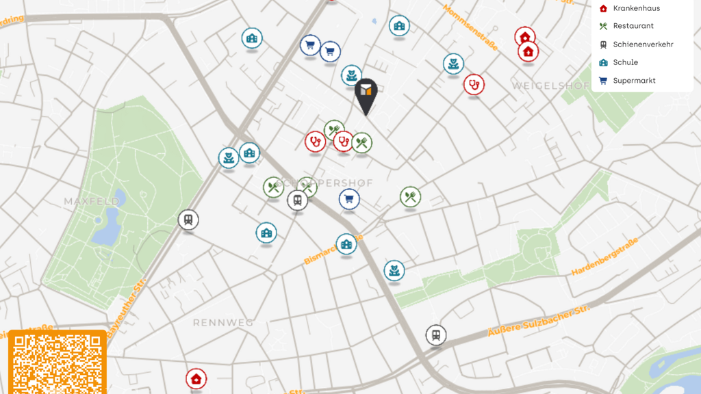 Diese Wohnung befindet sich in einem zentral gelegenen und gut angebundenen Stadtteil Nürnbergs. Die Umgebung überzeugt durch eine hervorragende Infrastruktur mit zahlreichen Einkaufsmöglichkeiten, Restaurants, Cafés sowie Apotheken und Ärzten, die bequem erreichbar sind.