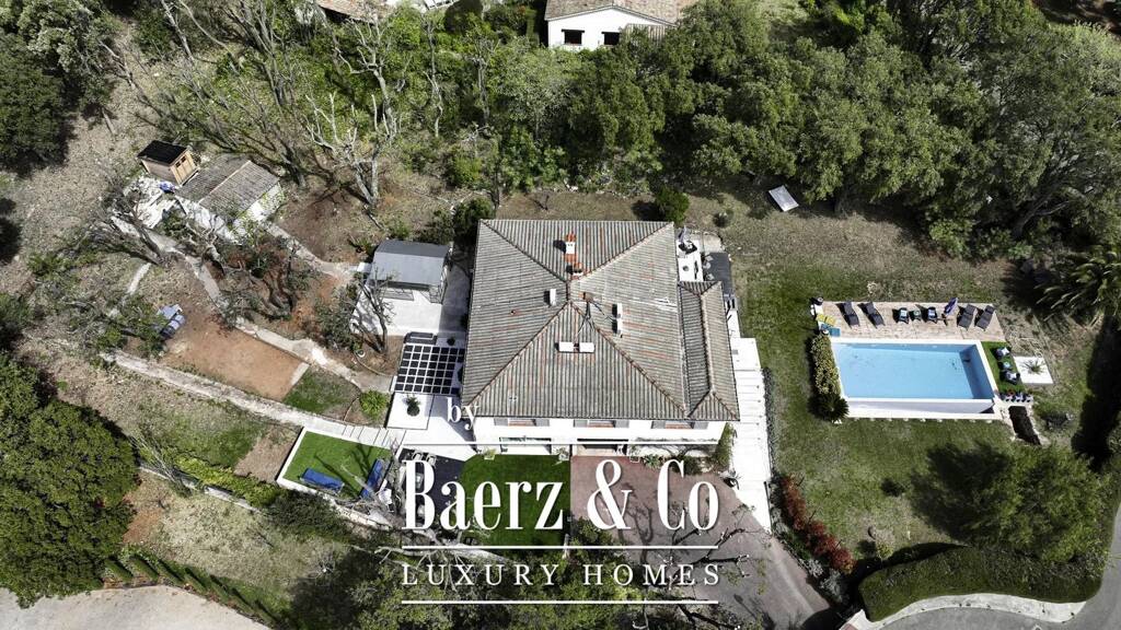 the property of approximately 300 m2, comprises 2 levels, completely and recently renovated (2020-2021) with modern and quality services. prime location, halfway between cannes and nice international airport. ideally located 15 minutes from the center of antibes and close to the beaches.