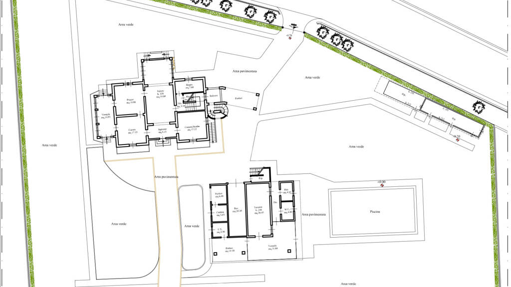 In diesem Bereich gibt es eine große gepflasterte Fläche neben dem Schwimmbad, wo Grillabende und gesellige Partys mit Freunden und Verwandten organisiert werden können, alles begleitet von einem wunderschönen privaten Park von ca. 3.000 qm.