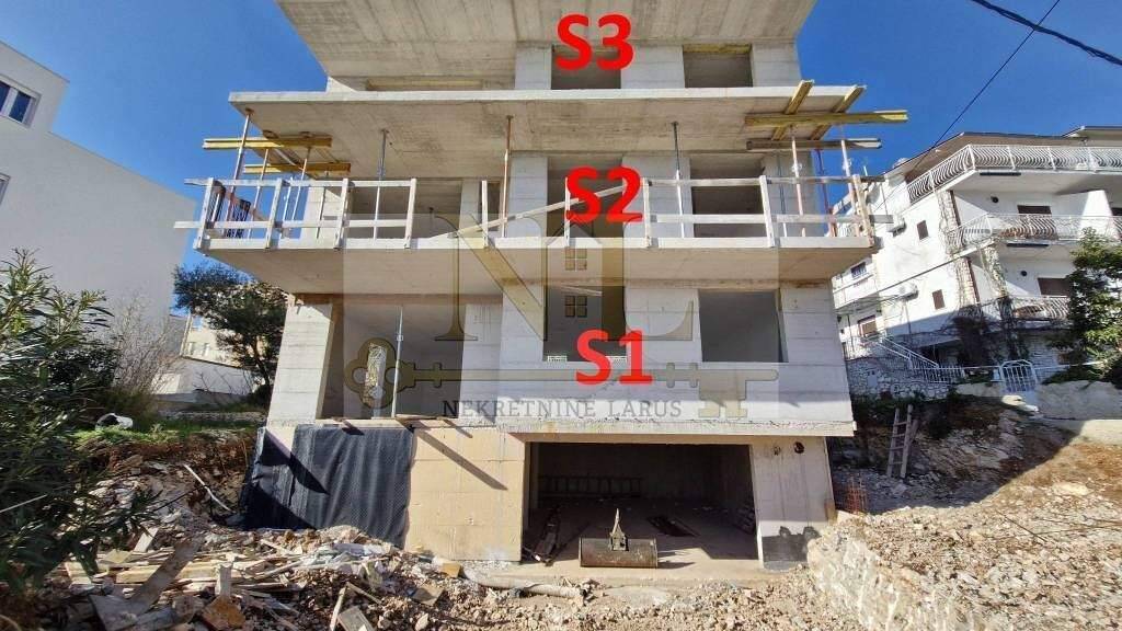 Apartment S1 im Erdgeschoss besteht aus: drei Schlafzimmern, zwei Badezimmern, Flur, geräumigem Wohnzimmer mit Küche und Esszimmer, Flur, gepflasterter Terrasse, Garten und eigenem privaten Pool.