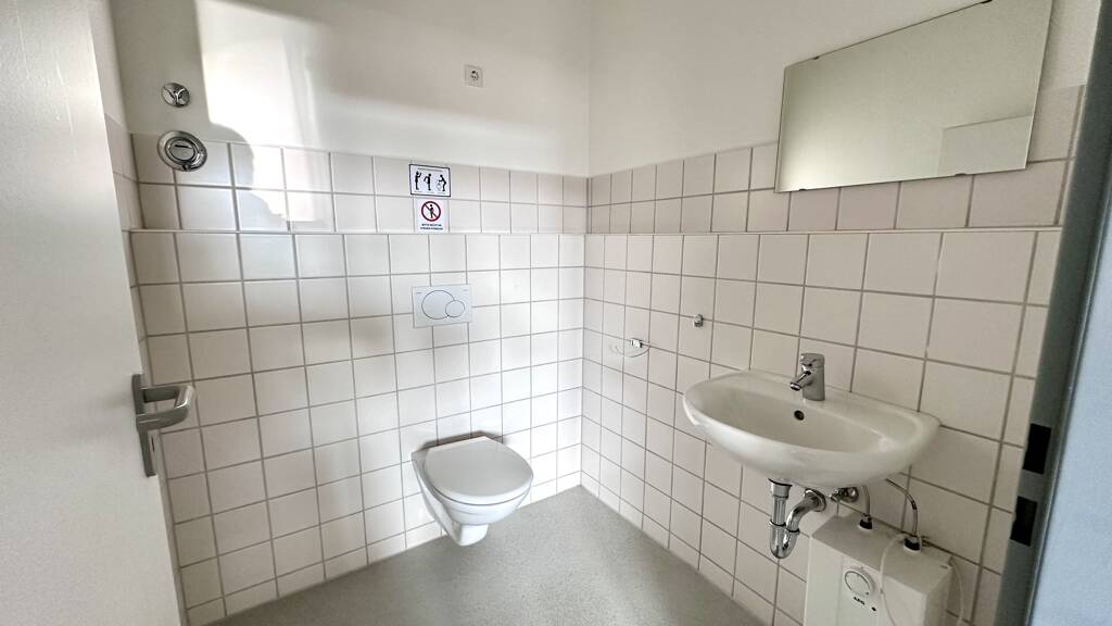 Sanitär: WC 1: Waschbecken, WC - deckenhoch weiß gefliest; WC 2: Waschbecken, WC - deckenhoch weiß gefliest; WC 3: Waschbecken, WC - 1/2-hoch weiß gefliest; WC 4: Waschbecken, WC - deckenhoch weiß gefliest; WC 5: Waschbecken, WC - deckenhoch weiß gefliest