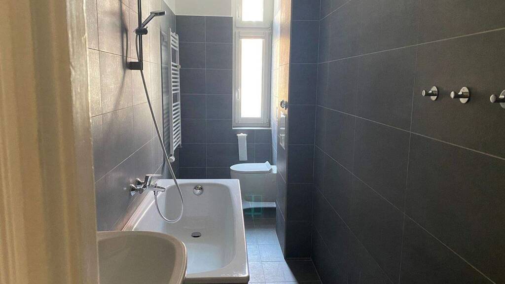 Die komplette Wohnung ist in den Zimmern mit Parkett und sowohl im Bad, als auch in der Küche mit hochwertigen Fliesen ausgelegt.