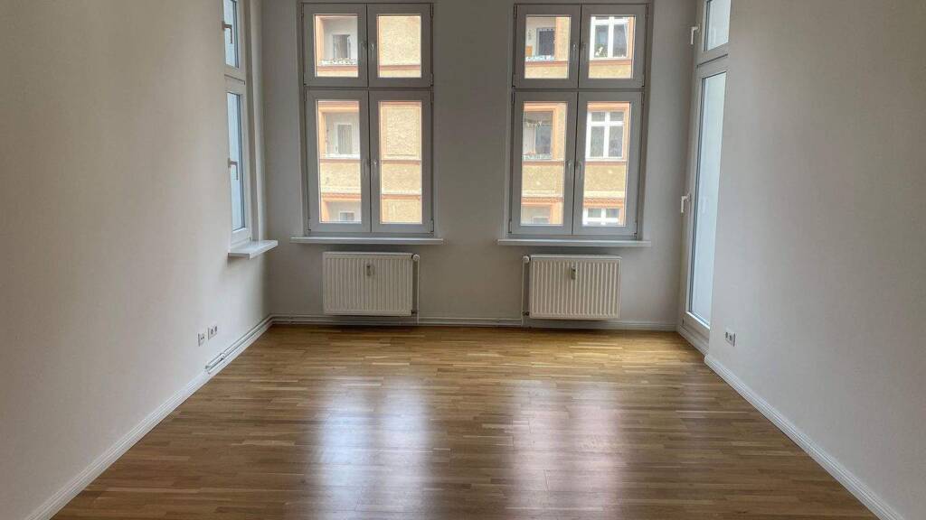 Es handelt sich hierbei um eine ca. 82m² große Dreizimmerwohnung im 2. OG des Vorderhauses. Sie ist Teil eines Wohn- und Geschäftshauses und überzeugt mit einem komfortablen Schnitt. Bereits beim Betreten der Wohnung lässt sich feststellen, dass es sich hierbei um eine geräumige und helle Wohnung handelt. Vom Flur gelangt man jeweils in die drei separat begehbaren Zimmer, wobei zwei der Räume jeweils einen direkten Zugang zum eigenen Balkon hat. Auch das moderne, tagesbelichtete Wannenbad und der Küchenbereich führen vom Flur ab.