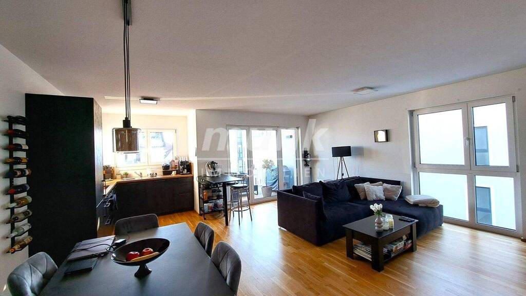 In den Wohn- und Essbereich ist eine moderne und hochwertige Einbauküche mit Markengeräten integriert, welche durch ein direktes Fenster abgerundet wird. Vom Wohnbereich aus gelangen Sie auf den sonnigen Balkon, der zum Verweilen einlädt.