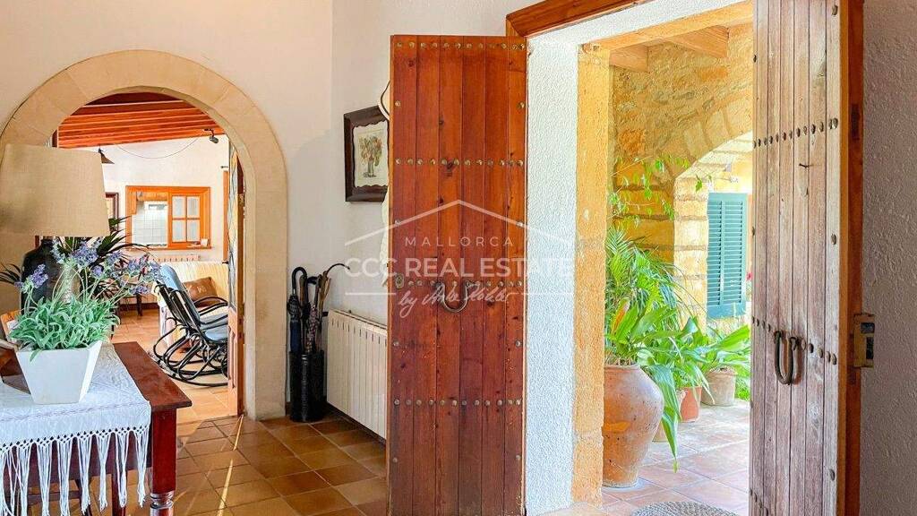 An das Wohnzimmer schließt sich eine charmante, typisch mallorquinische Einbauküche an. Ein separates Esszimmer vervollständigt den Wohnbereich und lädt zu geselligen Abenden ein. Von hier aus gelangt man auf eine idyllische Terrasse, die einen herrlichen Ort zur Entspannung und zum Genuss des mediterranen Klimas bietet.