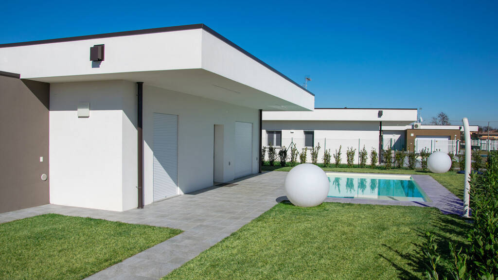 Die Villa, die sich in einer ruhigen Lage von Bedizzole befindet, verteilt sich auf eine Etage und ist atemberaubend in ihrer Größe und Architektur. Über 155m² Wohnfläche fügen sich harmonisch zu einem Gesamtbild zusammen, in dem elegantes Design und funktionaler Wohnraum gleichermaßen berücksichtigt werden. Dabei umfasst das Haus eine großzügige Villa von 100m², eine geräumige Garage mit 32m² und eine beeindruckende Loggia von 27m². Die Energieklasse A4 steht für Nachhaltigkeit und Energieeffizienz, Garanten für eine umweltfreundliche Lebensweise und zugleich Kosteneinsparung.