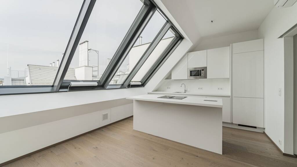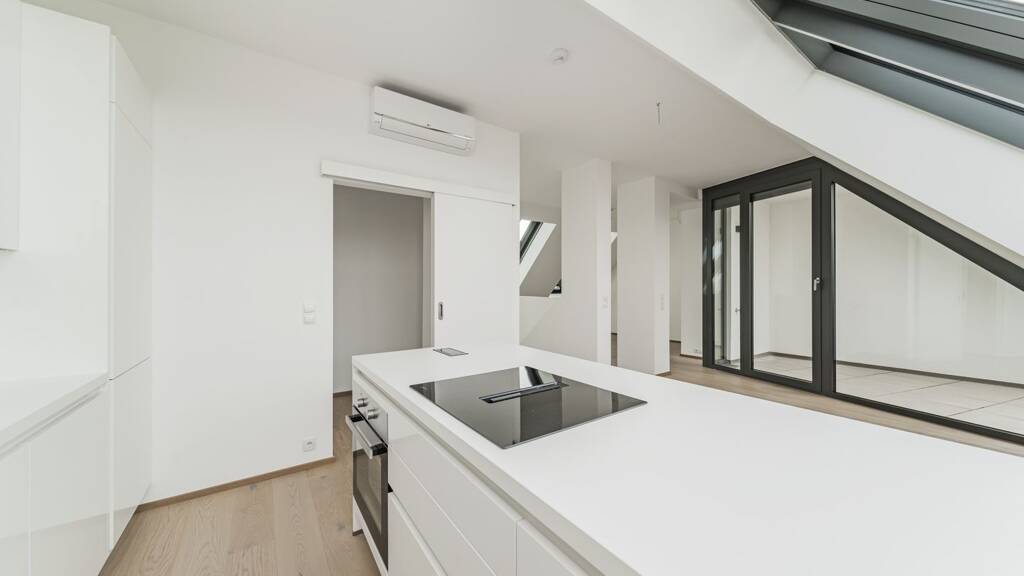 Ausstattung Die Dachgeschosswohnung verfügt über einen hochwertigen Parkettboden, eine moderne Einbauküche inklusive Einbaugeräten, Fließen in den Nassräumen sowie angenehme Außenflächen.