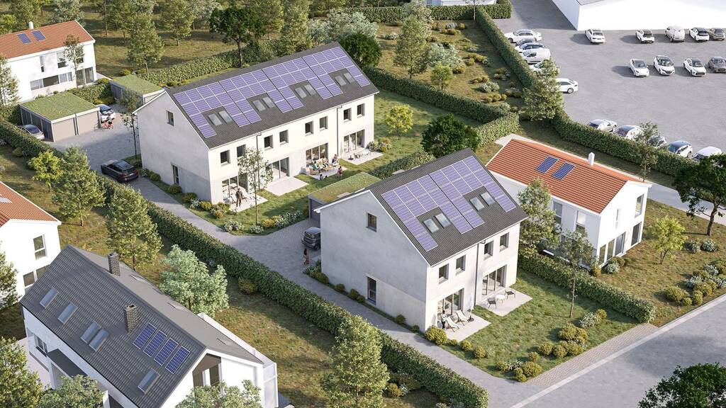 Doppelhaushälfte mit grosszügigem Privatgarten (ca. 188 m²) im Quartier "Im Kleinfeld" - mehr Platz und Privatsphäre für die ganze Familie. Ca. 122 m² Wohnfläche auf drei Etagen: offener Wohn-/Essbereich mit Terrassenzugang im EG, Elternschlafzimmer + Kinderzimmer + Vollbad im OG, lichtdurchflutetes Dachstudio als Homeoffice oder zweites Kinderzimmer im DG. Fussbodenheizung in allen drei Geschossen. Einbauküche inklusive. Nebenkosten ca. 250-350 EUR / Monat dank KfW-40-Standard. Erstbezug Oktober 2026.