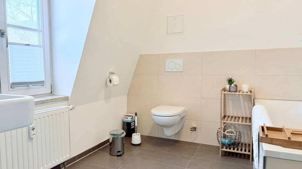 Über eine geschmackvolle Holztreppe gelangen Sie in das Dachgeschoss, das mit zwei komfortablen Schlafzimmern sowie einem weiteren Badezimmer überzeugt und somit ausreichend Platz für Paare oder kleine Familien bietet.
