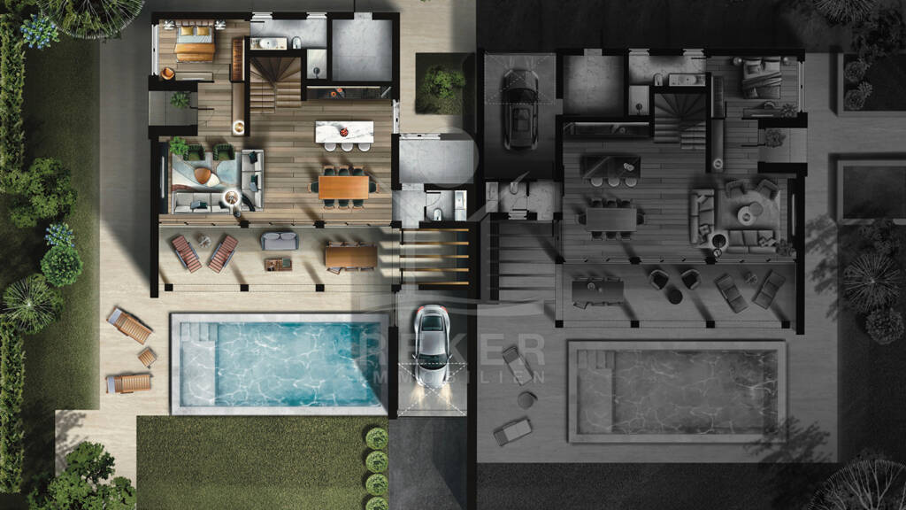 Smart-Home-System für ein luxuriöses Leben: Doppelhaushälfte mit Pool und Garage