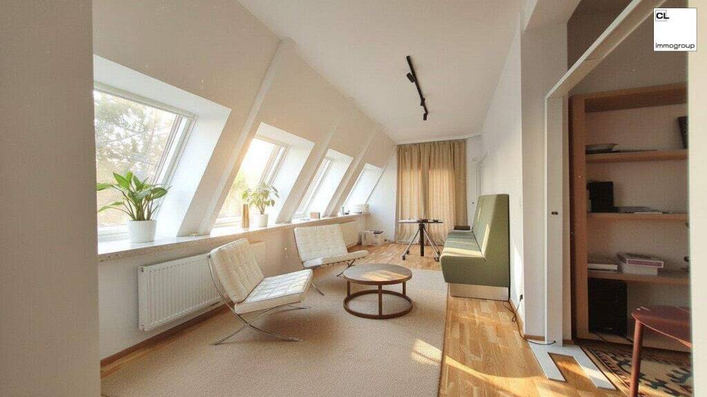 Diese Dachgeschosswohnung beeindruck durch ihre klare Architektur, durchdachte Raumaufteilung und den repräsentativen Zugang über den Lift direkt in die Wohnung - ein seltenes Highlight im Wiener Stadtbild.