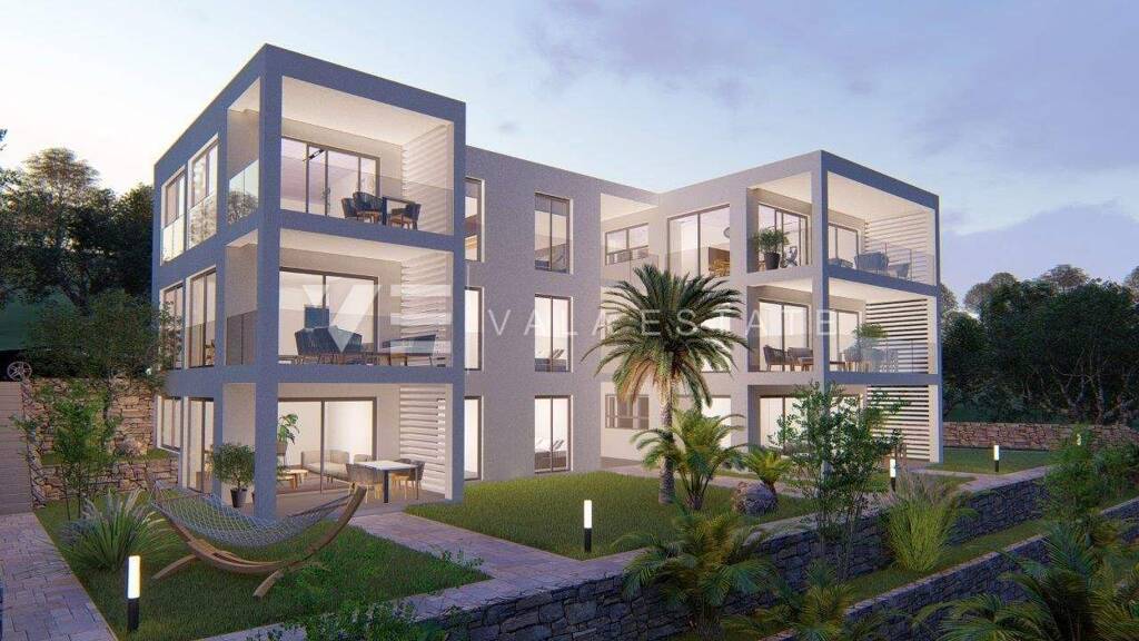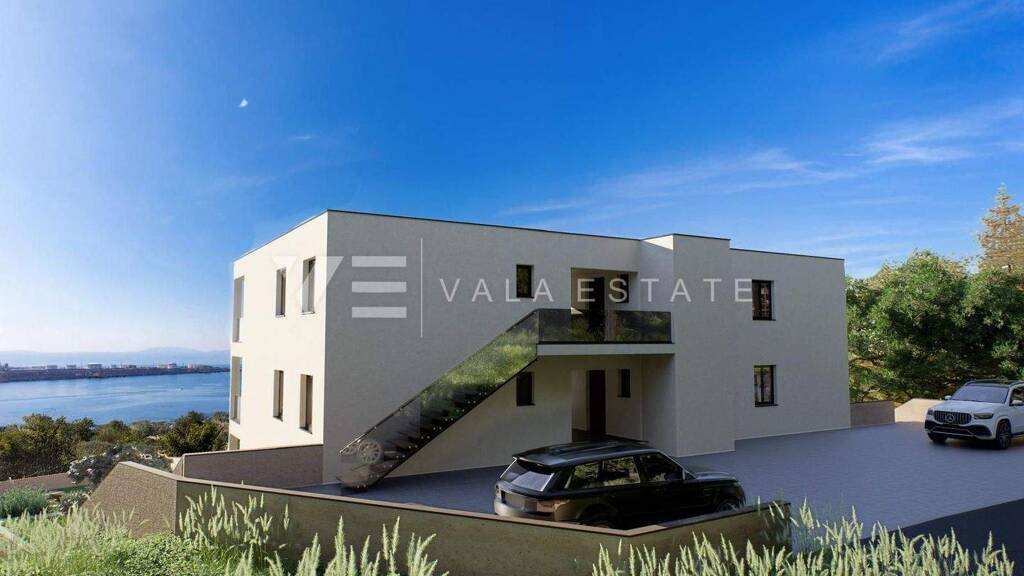 Immobilien Insel Krk, Omisalj - zum Verkauf steht eine Ferienwohnung im ersten Stock eines Neubaus mit insgesamt sechs Wohneinheiten. Die Ferienwohnung hat eine Wohnfläche von 81 m2 und besteht aus einem Eingangsbereich, zwei Schlafzimmern, einem Badezimmer, einer Küche, einem Esszimmer und einem Wohnzimmer mit Zugang zu einer überdachten Terrasse mit offenem Panoramablick auf die Kvarner Bucht. Im gemeinsamen Innenhof des Gebäudes stehen zwei Parkplätze zur Verfügung, wo Ladegeräte für Elektrofahrzeuge installiert werden. Für den Bau wurden hochwertige Materialien und Ausstattungen verwendet, darunter Keramikbodenbeläge, hochwertige Sanitärkeramik, Fußbodenheizung mit Wärmepumpe, Klimaanlage, ein Smart-Home-System, hochwertige ALU-Tischlerei mit ALU-Rollläden und Sicherheitstüren. Die Immobilie befindet sich in bester Lage in der Nähe des Meeres, schöner Strände und des Zentrums mit allen notwendigen Annehmlichkeiten. Die Immobilie befindet sich derzeit im Bau und soll voraussichtlich Ende 2025 fertiggestellt sein.