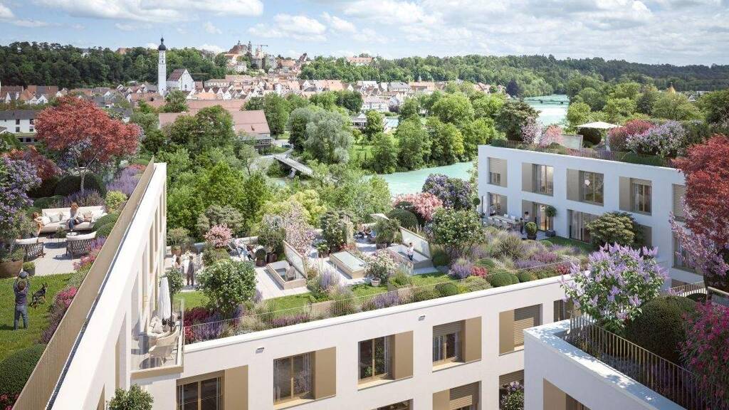 Als eines von zwei Wohngebäuden "Am Papierbach" bietet der neue Bauabschnitt exklusive Blicke über den Lech bis in die Altstadt. Durch die prominente Lage erreichen Sie über den Lady-Herkomer-Steg in wenigen Minuten die Landsberger Altstadt oder das Zentrum des Quartiers.