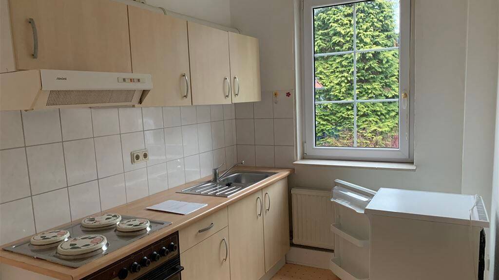 Diese kleine 2-Zimmer-Wohnung befindet sich im 1. Obergeschoss rechts eines 5- Familienhauses. Die Wohnungstür führt direkt in die Küche (mit Einbauküche), welche dann nach links in Schlafzimmer und ins Wannenbad mit Fenster und nach rechts ins Wohnzimmer führt. Im Wohnzimmer wird noch ein neues PVC-Bodenbelag verlegt!!