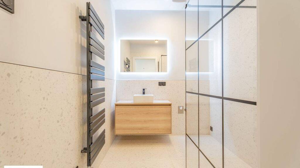 Über den einladenden Vorraum betreten Sie die großzügige Wohnküche mit ca. 29,5?m² - das Herzstück der Wohnung. Von hier aus gelangt man auf den ruhigen Balkon mit Blick ins Grüne. Das Schlafzimmer (ca. 18?m²) liegt zur Straßenseite und verfügt über ein elegantes Bad en suite. Das moderne Badezimmer ist mit einer bodengleichen Walk-In-Dusche, einem stilvollen Waschtisch samt Unterschrank und einem Handtuchheizkörper ausgestattet. Der Waschmaschinenanschluss ist ebenfalls integriert. Ein separates WC befindet sich direkt beim Wohnungseingang.
