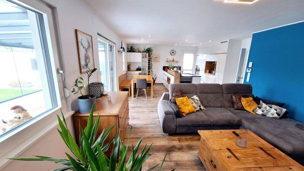 Zum Verkauf gelangt ein sehr gepflegtes Fertigteilhaus der Firma HARTL aus dem Jahr 2018 in attraktiver und ruhiger Siedlungslage.Auf ca. 100 m² Wohnfläche bietet das Haus eine durchdachte Raumaufteilung mit drei Schlafzimmern, einem hellen Wohn- und Essbereich sowie modernen Sanitärbereichen. Ein besonderes Highlight ist die großzügige, verglaste Terrasse bzw. der Sommergarten mit ca. 34 m², die den Wohnraum optimal erweitert und ganzjährig genutzt werden kann.